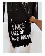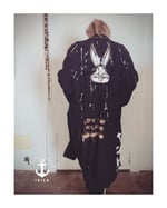 Dieser leichte Vintage Trenchcoat besteht aus schwarzer , weich fallender Baumwolle. „ Handbemalt und verziert mit stencil(s)/ Siebdrucken und Patches.