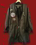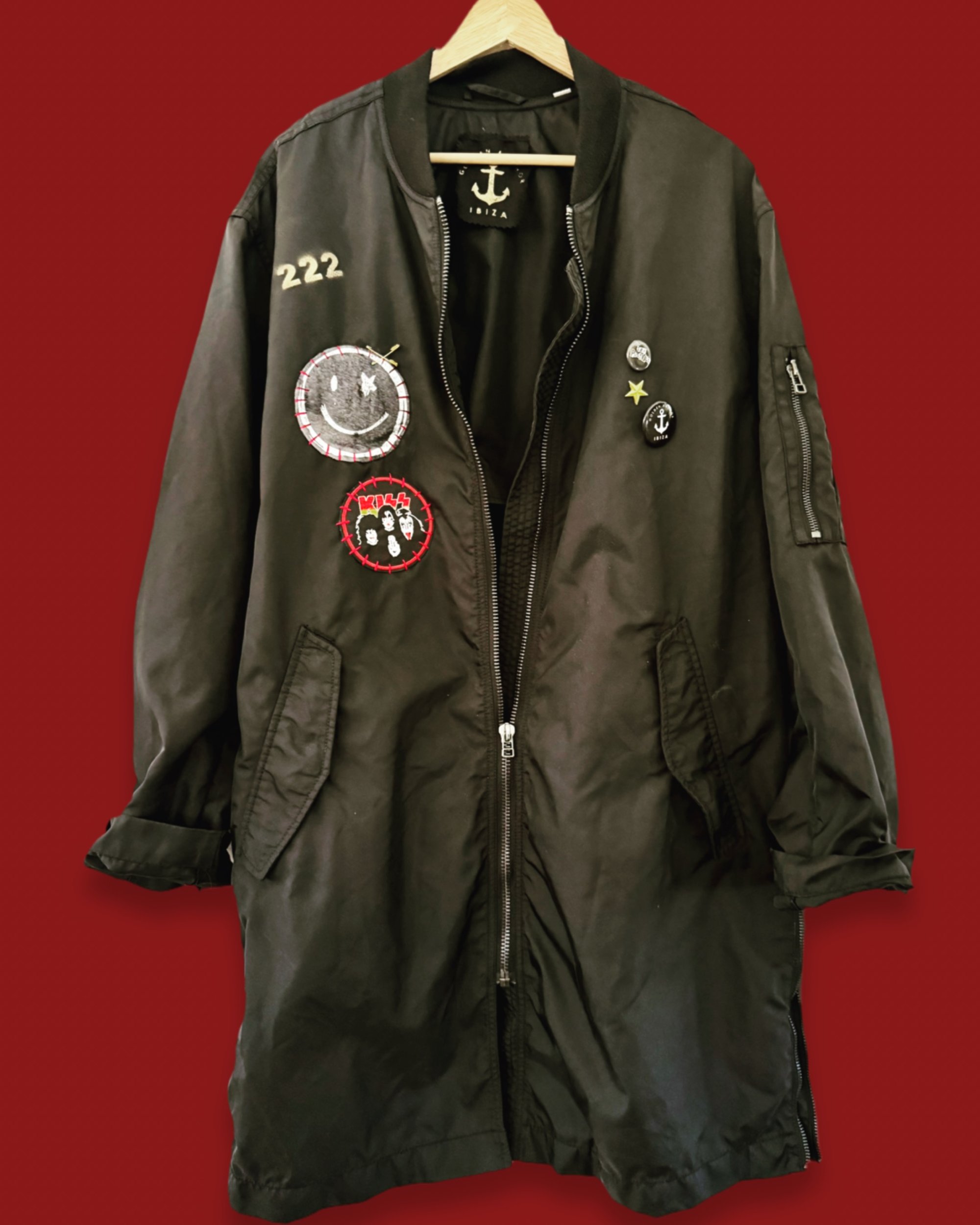 Die Basis dieser ungefütterte. Upcycling-Bomberjacke bildet ein sorgfältig ausgewähltes Vintage-Original aus robusten Materialien. Das Stück wurde in Ibiza individuell weiterentwickelt und manuell veredelt – unter anderem mit Siebdrucken, Stencils, Patches und Farben. Der Schnitt ist relaxed und unisex, konzipiert für Oversize-Looks oder individuelles Styling. Durch den handwerklichen Prozess entstehen leichte Unterschiede, die jeder Jacke ihren eigenen Charakter verleihen. Entworfen für Menschen, die Individualität, Qualität und bewusste Modeentscheidungen schätzen.