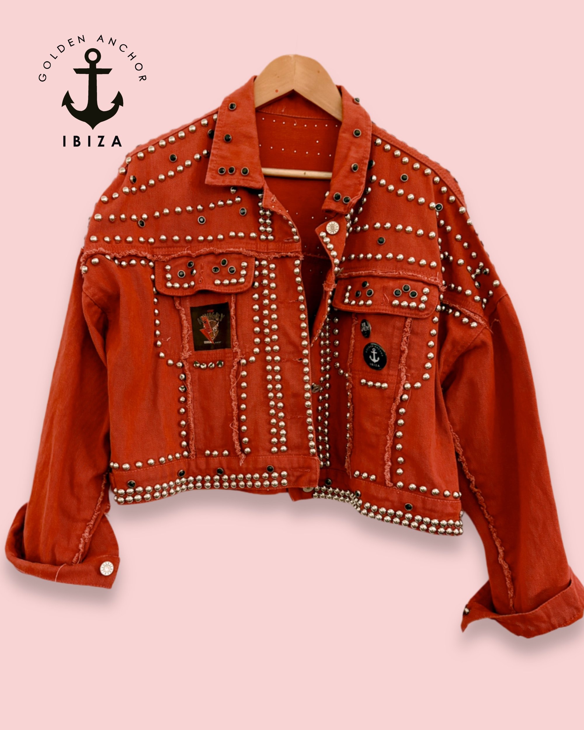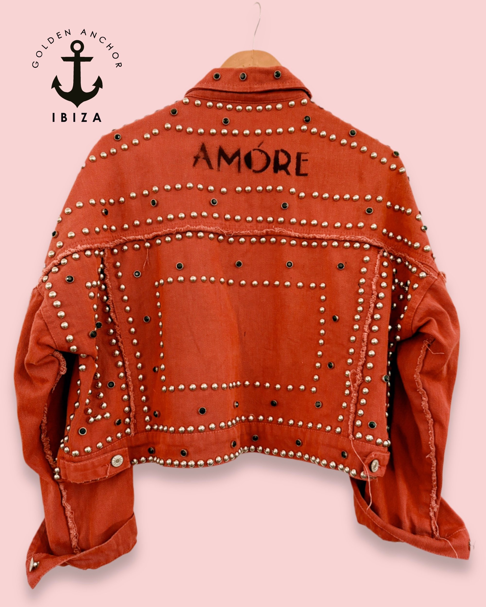 Vintage Denis Jacke, allover mit Nieten - Amoré Schriftzug am Rücken - MADE WITH PASSION IN IBIZA ♻️
