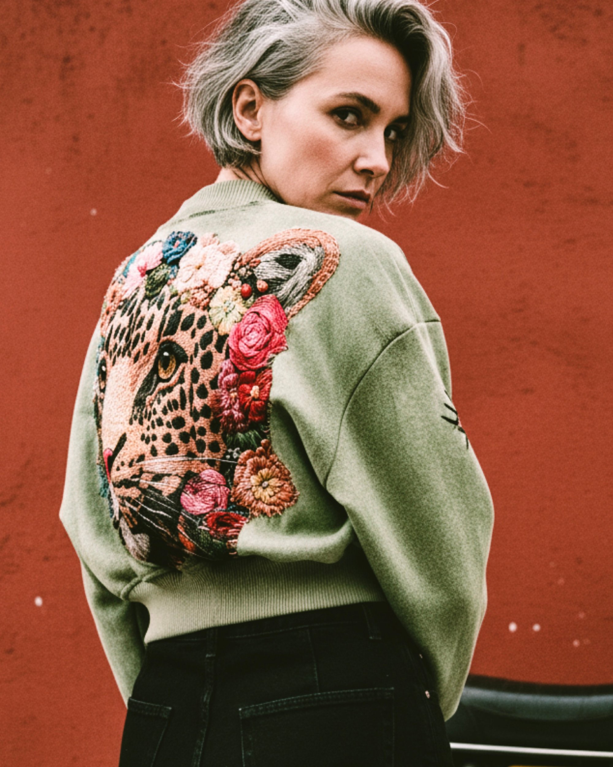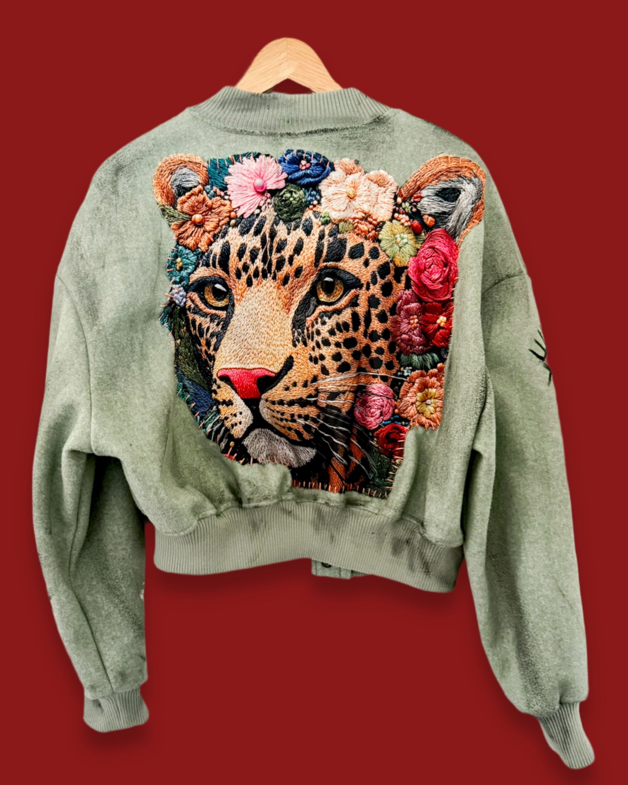 • upcycling vintage bomber jacket.