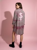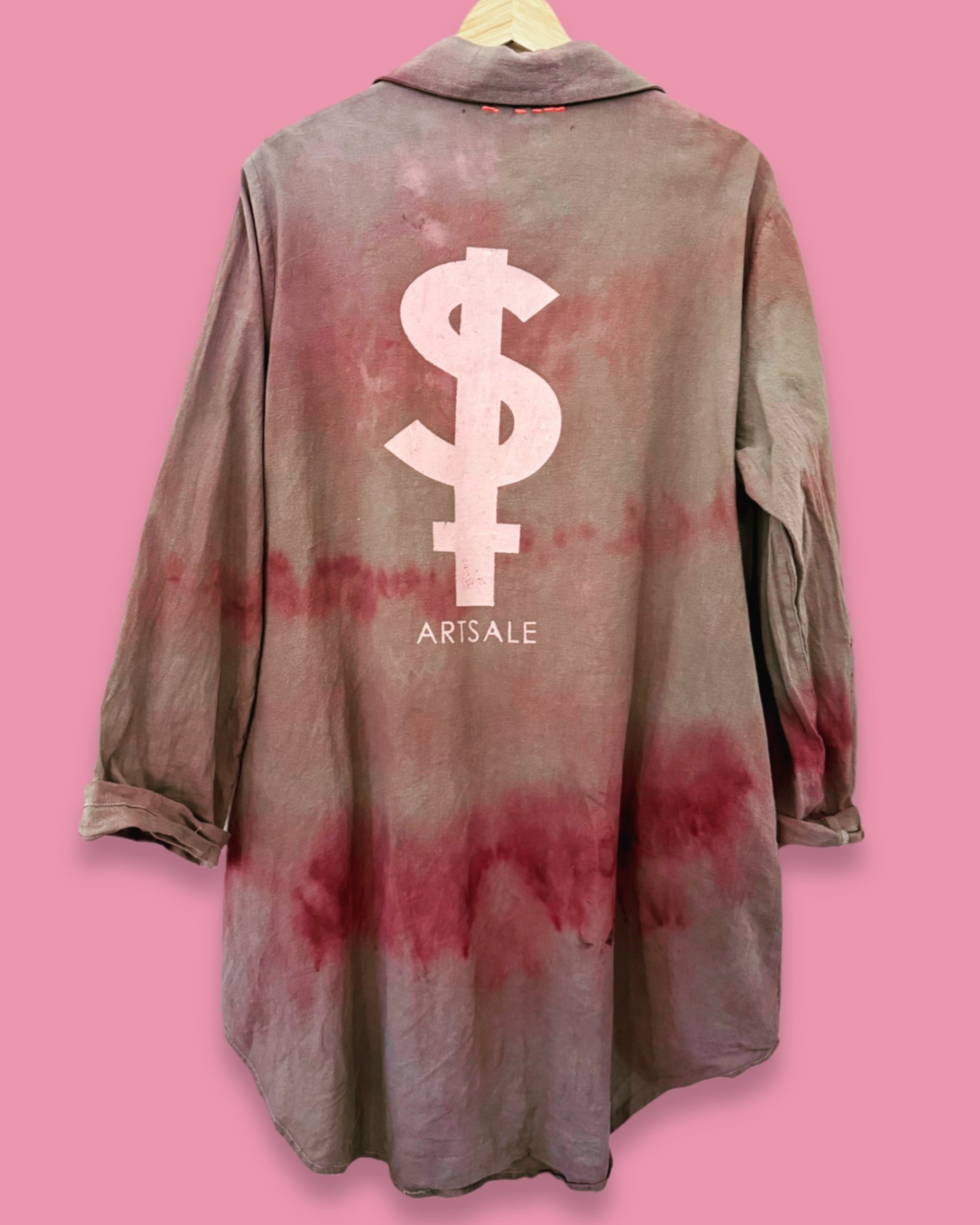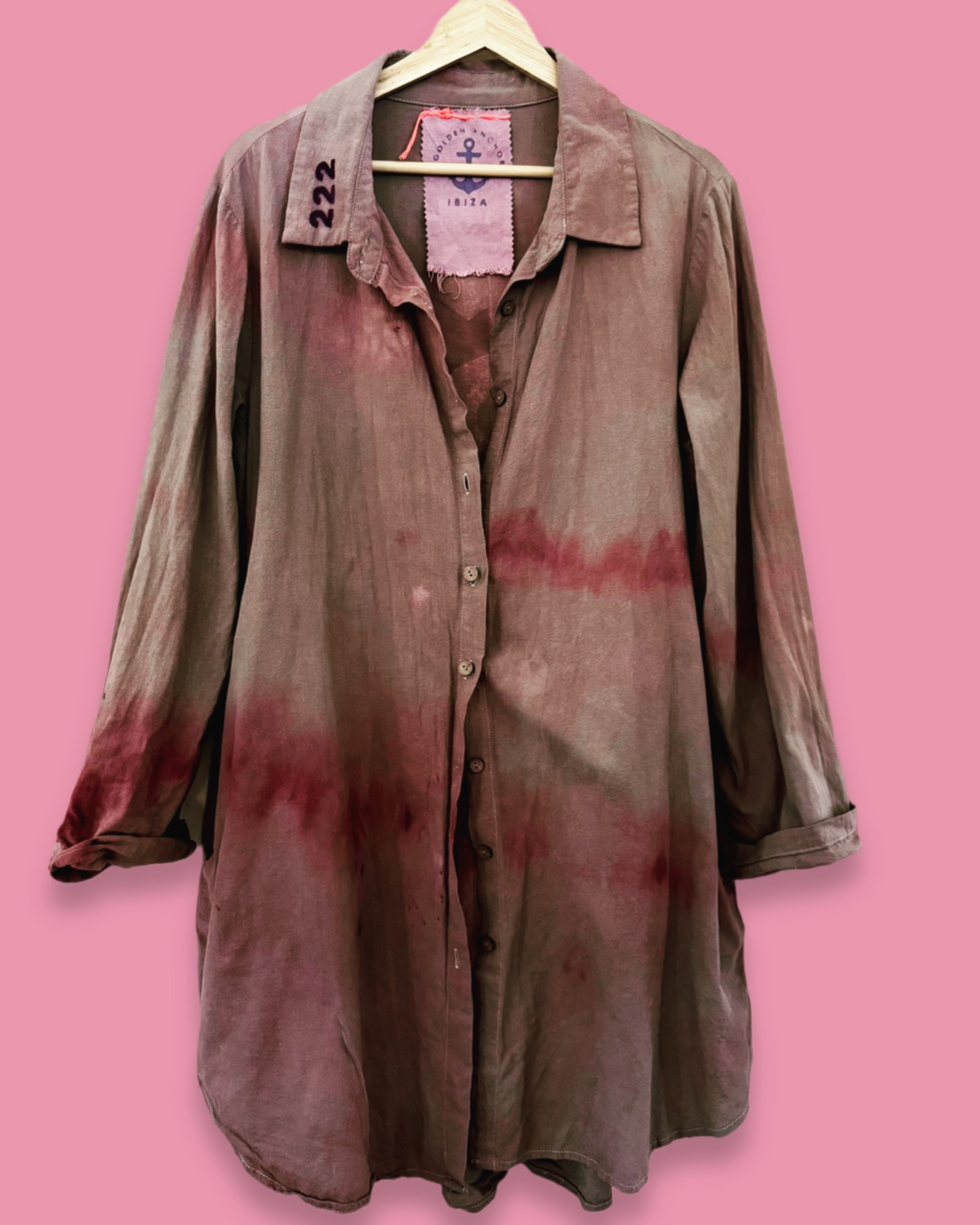 Lässiges Oversize-Hemdkleid aus Baumwolle. Von Hand gefärbt und bedruckt, wodurch eine individuelle Farbstruktur mit unregelmäßigen Übergängen und einzigartiger Tiefe entsteht.