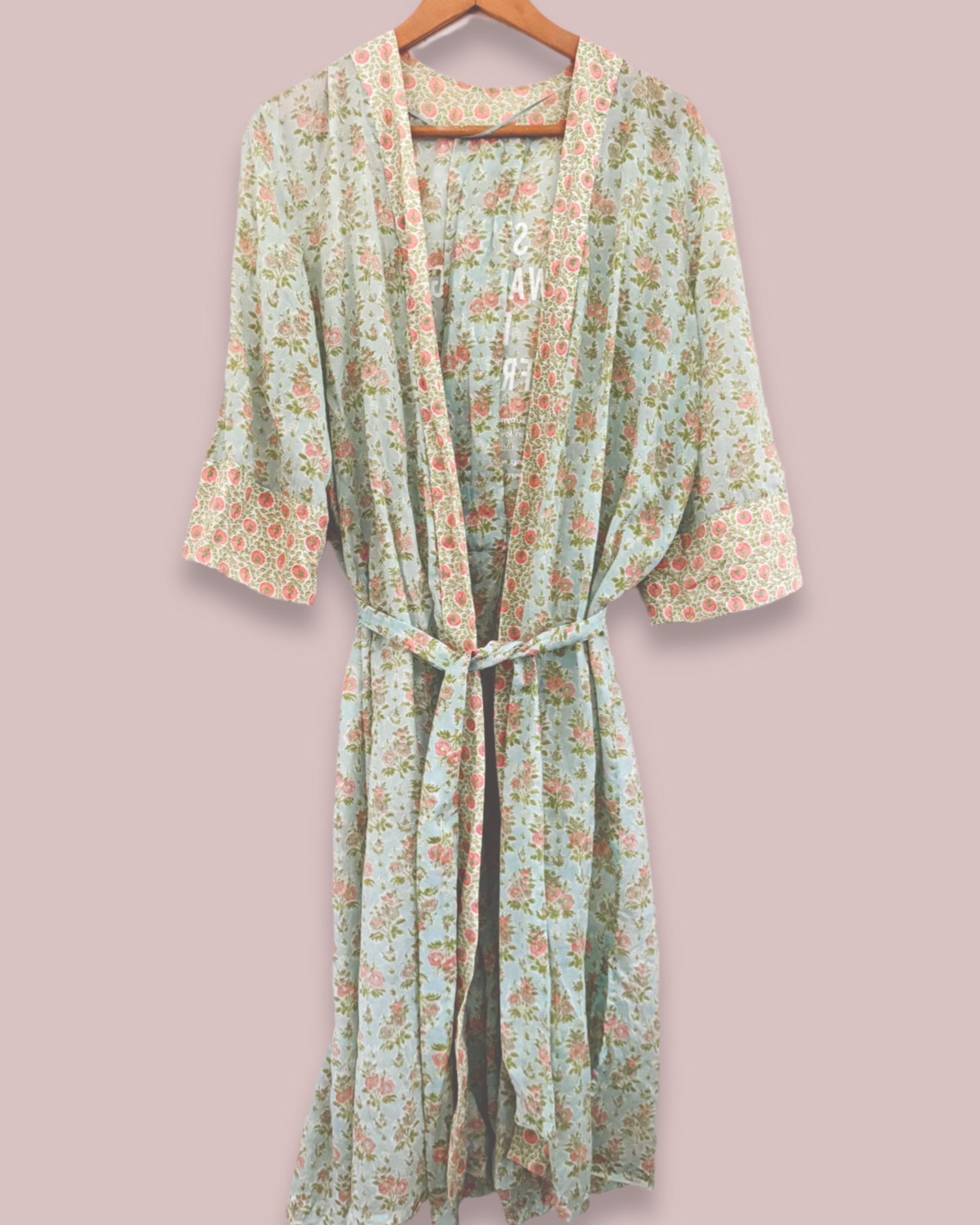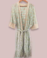 Weich fallender Vintage upcycling Kimono aus Baumwolle und Print Am Rücken