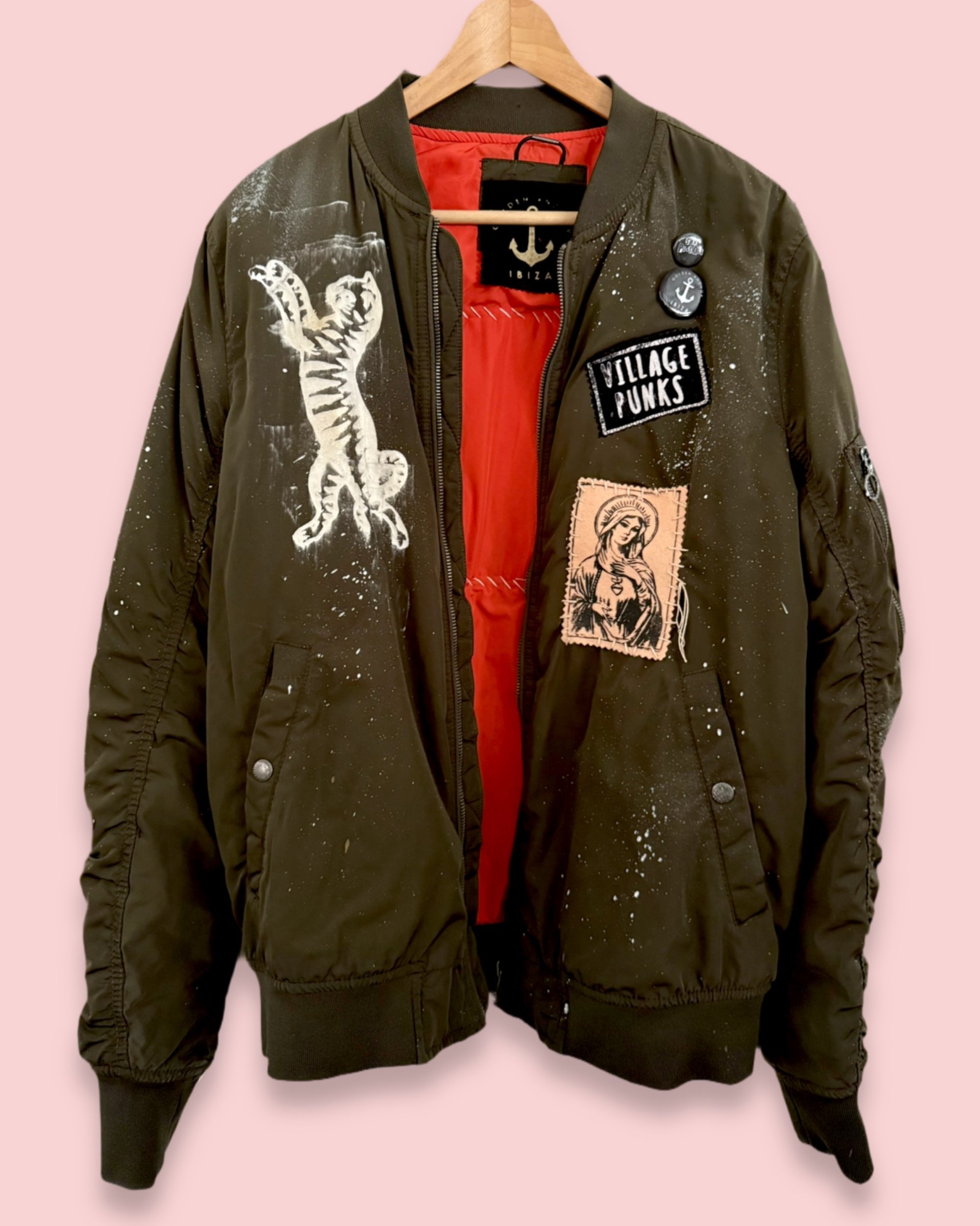 Die Basis dieser Upcycling-Bomberjacke bildet ein sorgfältig ausgewähltes Vintage-Original aus robusten Materialien. Das Stück wurde in Ibiza individuell weiterentwickelt und manuell veredelt – unter anderem mit Siebdrucken, Stencils, Patches und Farben. Der Schnitt ist relaxed und unisex, konzipiert für Oversize-Looks oder individuelles Styling. Durch den handwerklichen Prozess entstehen leichte Unterschiede, die jeder Jacke ihren eigenen Charakter verleihen. Entworfen für Menschen, die Individualität, Qualität und bewusste Modeentscheidungen schätzen.