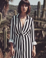 Weicher Stoff, angenehmer Fall und lässiger Schnitt mit durchgehender Knopfleiste und Taillengürtel zum Binden. Die Ärmel können gekrempelt getragen werden.