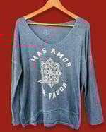 Baumwoll Shirt / Einheitsgrösse (36-42) /weiter Rundhals-Ausschnitt/ .Handgedruckter Schriftzug " MAS AMOR POR FAVOR"