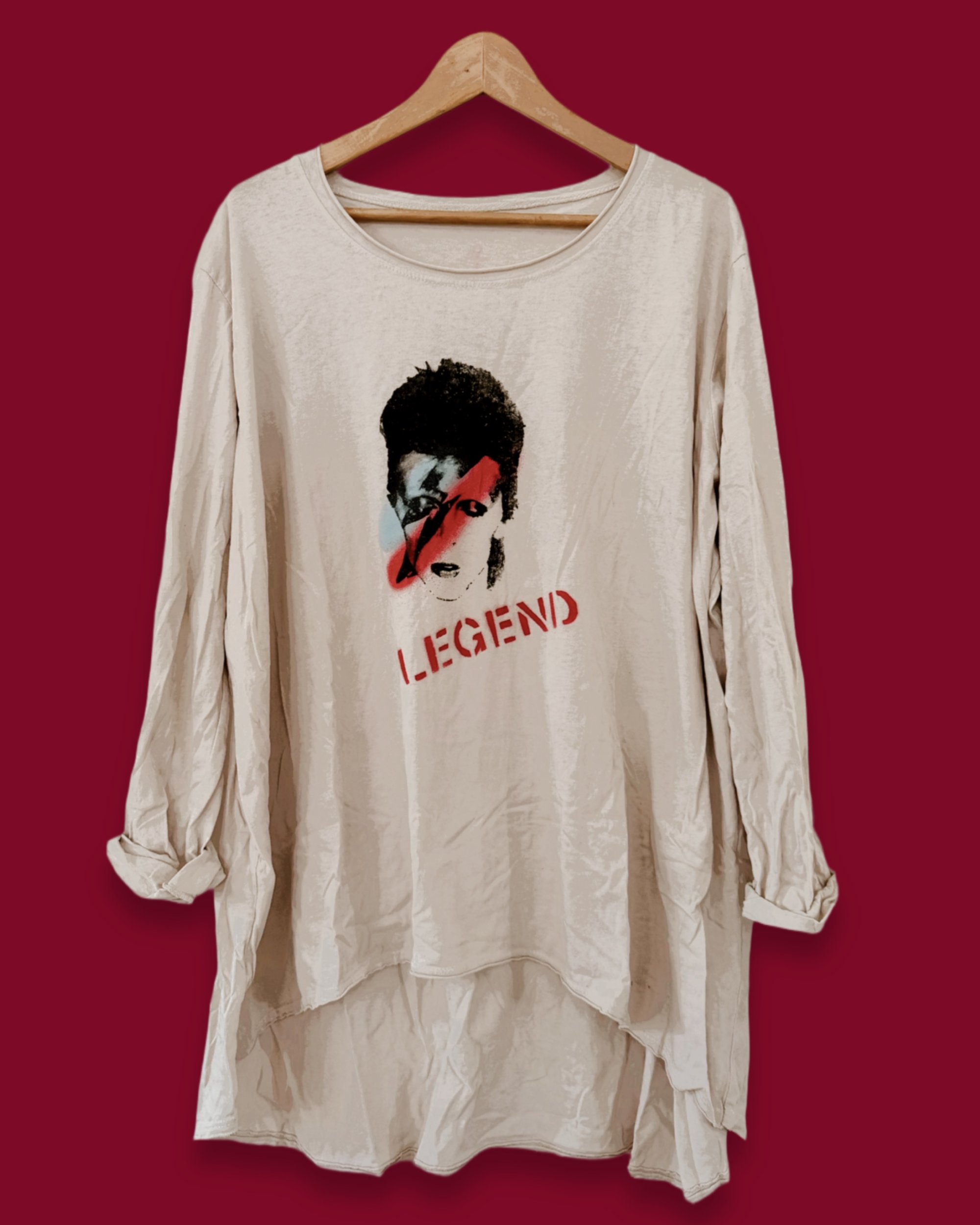 LEGEND BOWIE ϟ HANDRINTED UNISEX LONGSLEEVE ϟ ONESIZED ϟ COTTON SHIRT