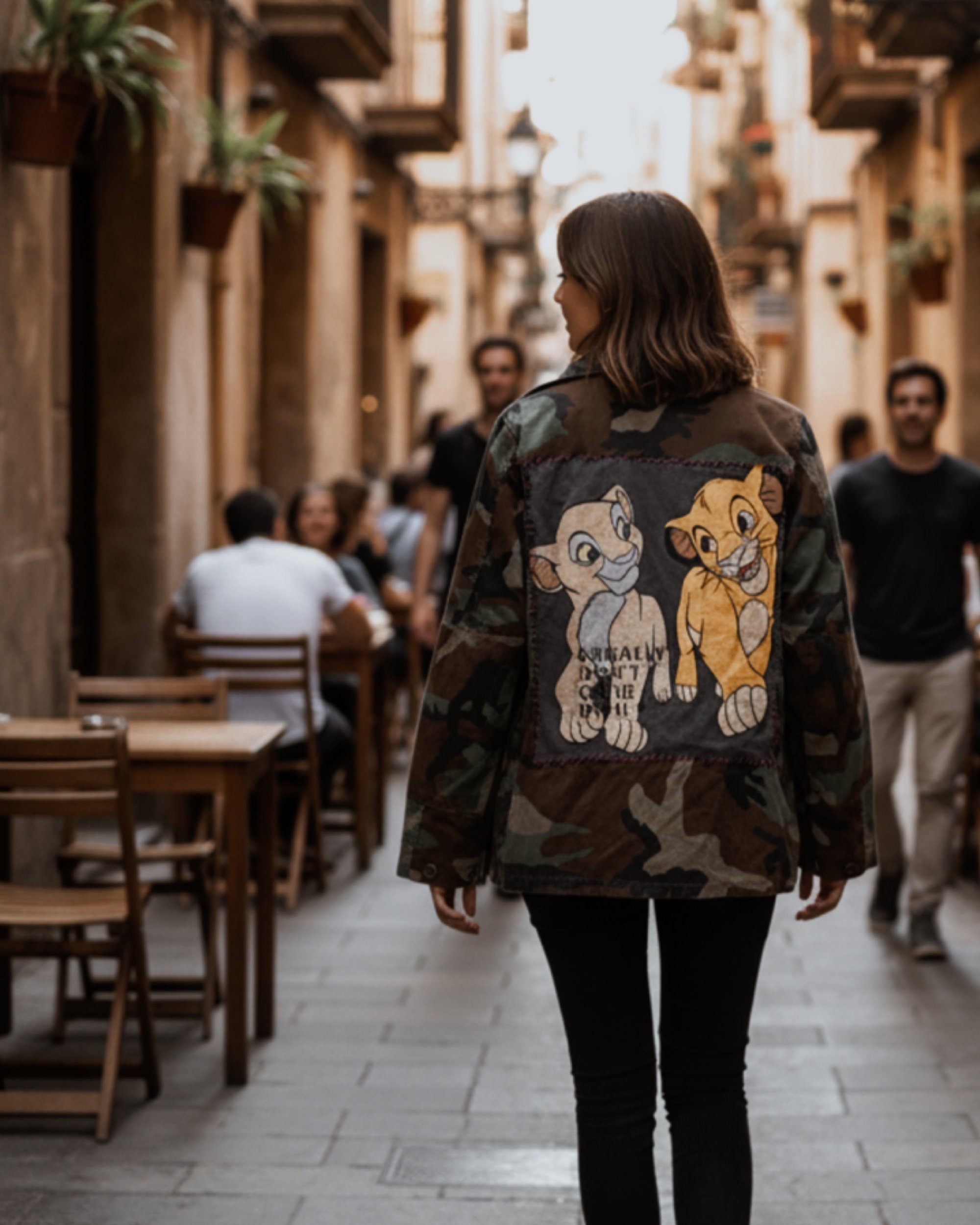 Die Basis dieses Upcycling-Camouflage Jacke bildet ein sorgfältig ausgewähltes Vintage-Original aus robusten Materialien. Das Stück wurde in Ibiza individuell weiterentwickelt und manuell veredelt – unter anderem mit Siebdrucken, Stencils, Patches und Farben. Der Schnitt ist relaxed und unisex, konzipiert für Oversize-Looks oder individuelles Styling. Durch den handwerklichen Prozess entstehen leichte Unterschiede, die jeder Jacke ihren eigenen Charakter verleihen. Entworfen für Menschen, die Individualität, Qualität und bewusste Modeentscheidungen schätzen.