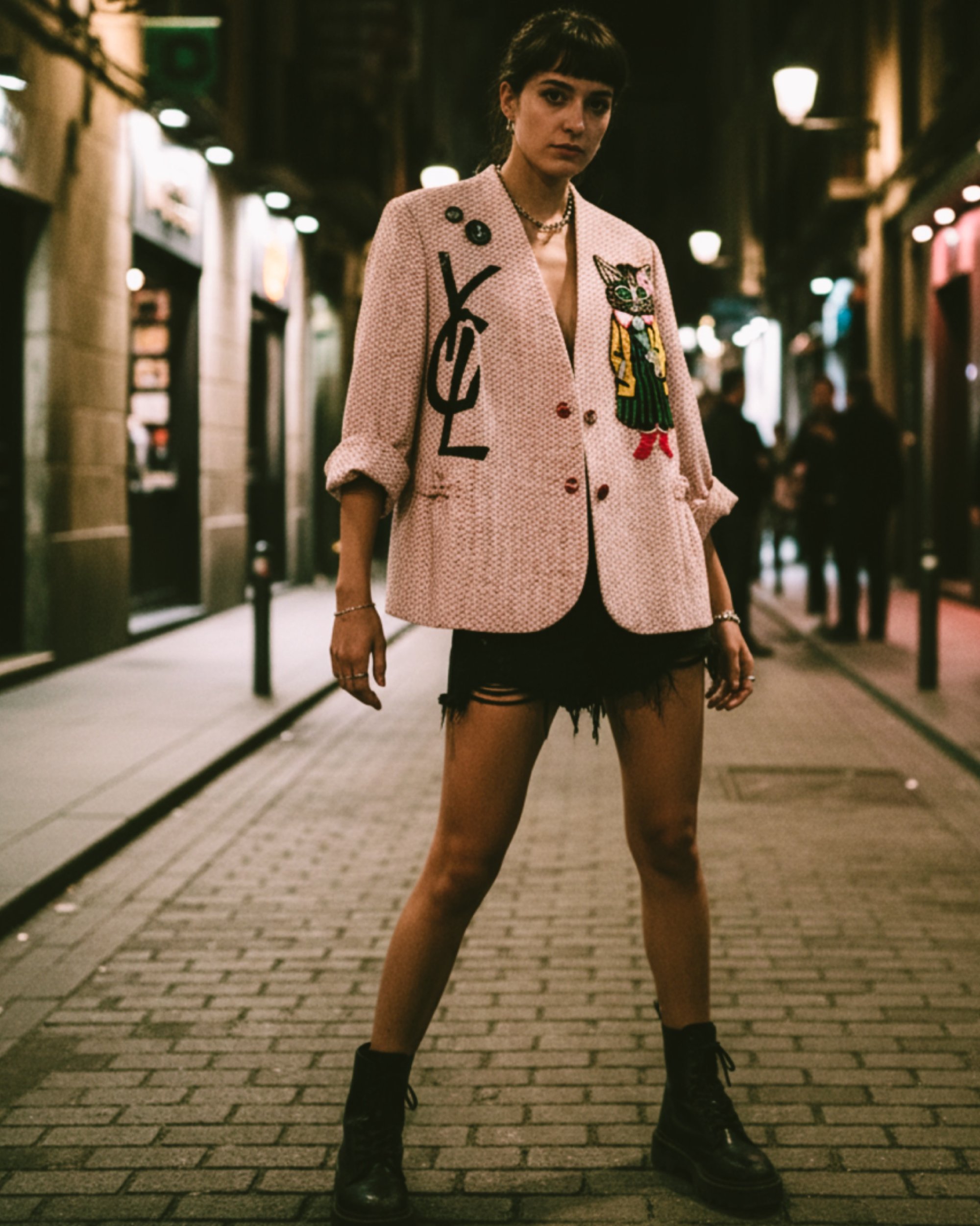 Der Blazer verbindet Eleganz mit Ironie und macht jedes Outfit zum Hingucker – als Kontrast zu Jeans und Sneakers oder als provokantes Highlight über einem Kleid.
