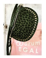 Leder Leo Crossbag / flaschengrün mit Nietenverzierung. Taschengurt verstellbar und abnehmbar. Kann crossover getragen werden.