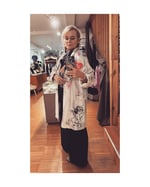 Leichter Vintage Mantel aus Leinen. Handbemalt und verziert mit stencil(s)/ Siebdrucken und Patches.