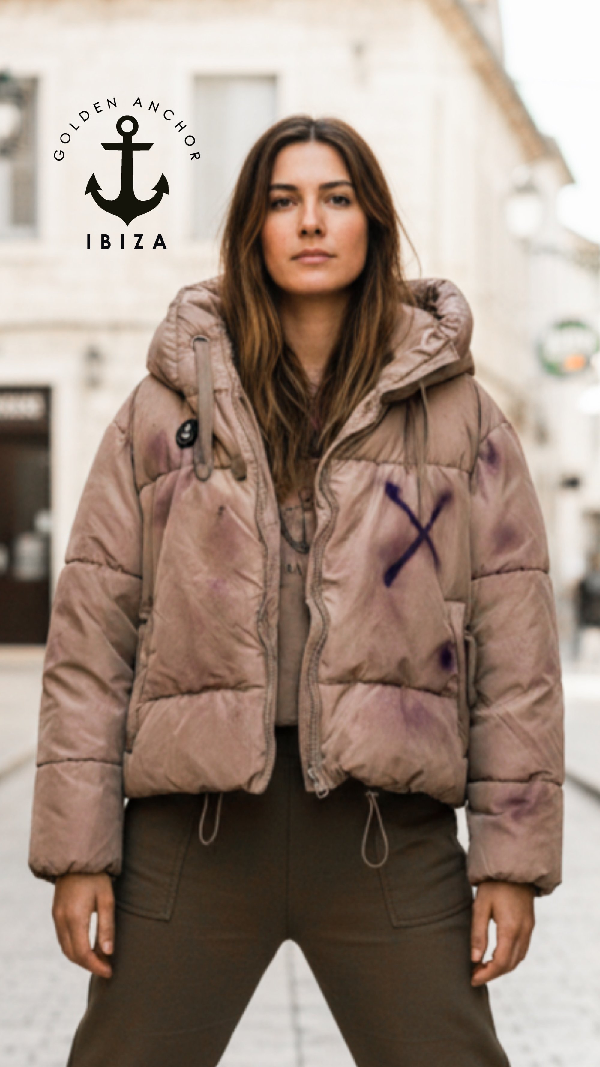 Kurze Vintage Bomberjacke - am Rücken verziert mit stencils, Buttons- MADE WITH PASSION IN IBIZA ♻️