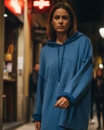 Locker geschnittener Kapuzenpullover aus softem Frottee-Jersey in Ockerton/ oder blau.