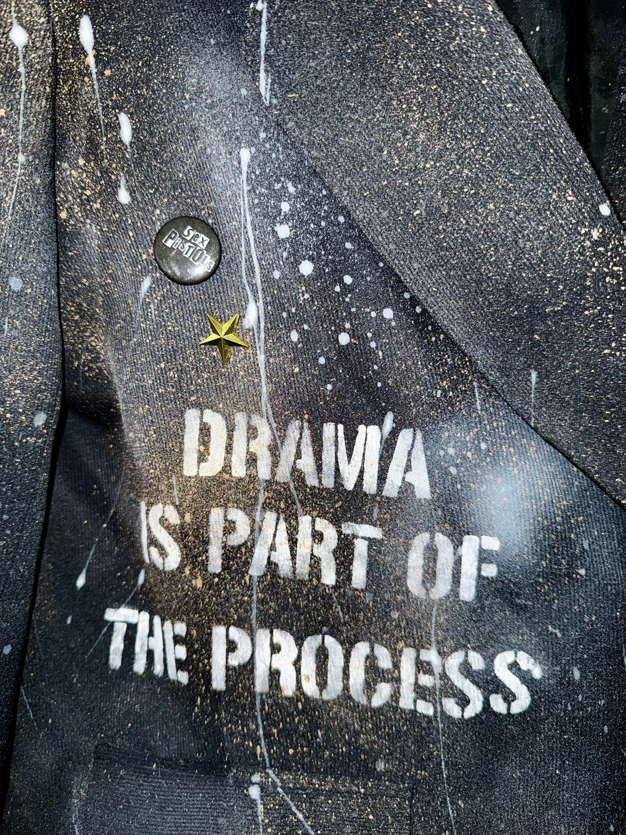 • richly decorated with button(s), rivets, patches, stencils & lettering.