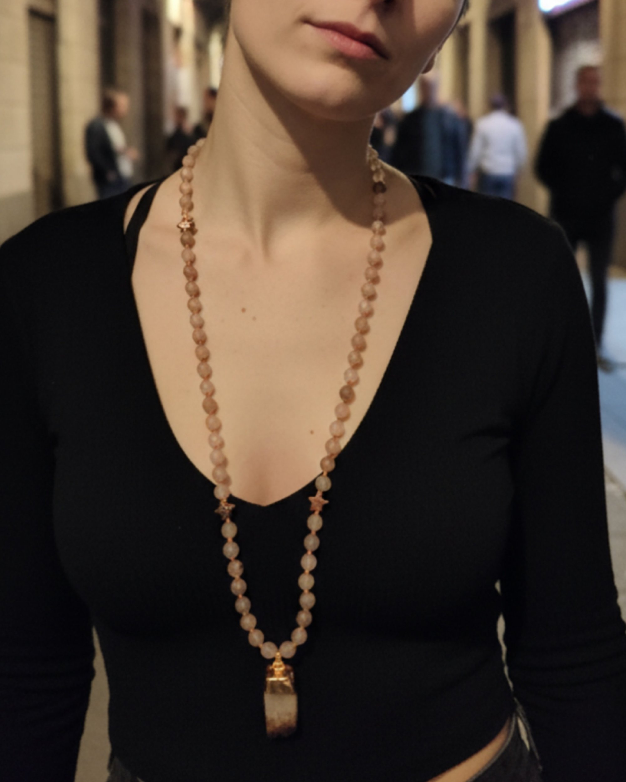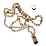 Diese Mala ist aus sorgfältig ausgewählten Natursteinen gefertigt und von Hand geknüpft.