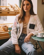 Ein einzigartiges Unikat. Klassische kurz geschnittene Jacke von Hand veredelt und upgecycled