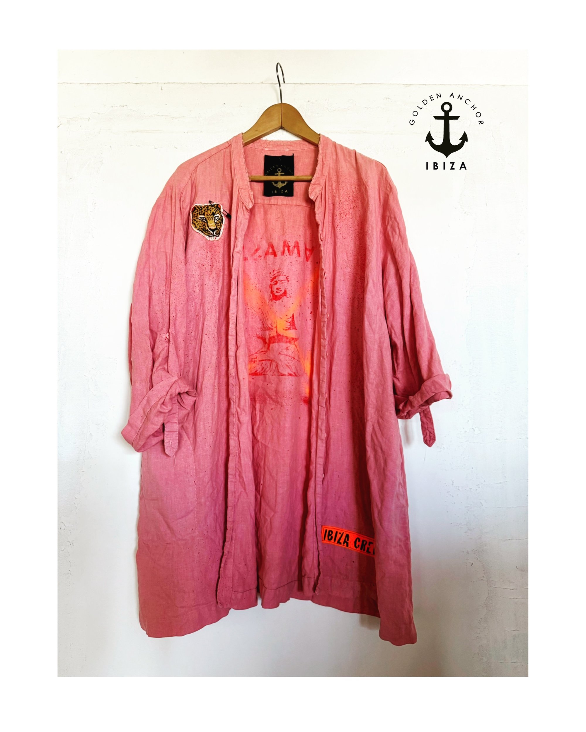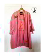 Leichter Vintage upcycling Mantel / Hemd aus Leinen. Hand bedruckt und verziert mit stencil und Patche