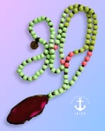 Diese Kette ist aus sorgfältig ausgewählten Perlen gefertigt und von Hand geknüpft. Als Anhänger dient ein Anhänger.