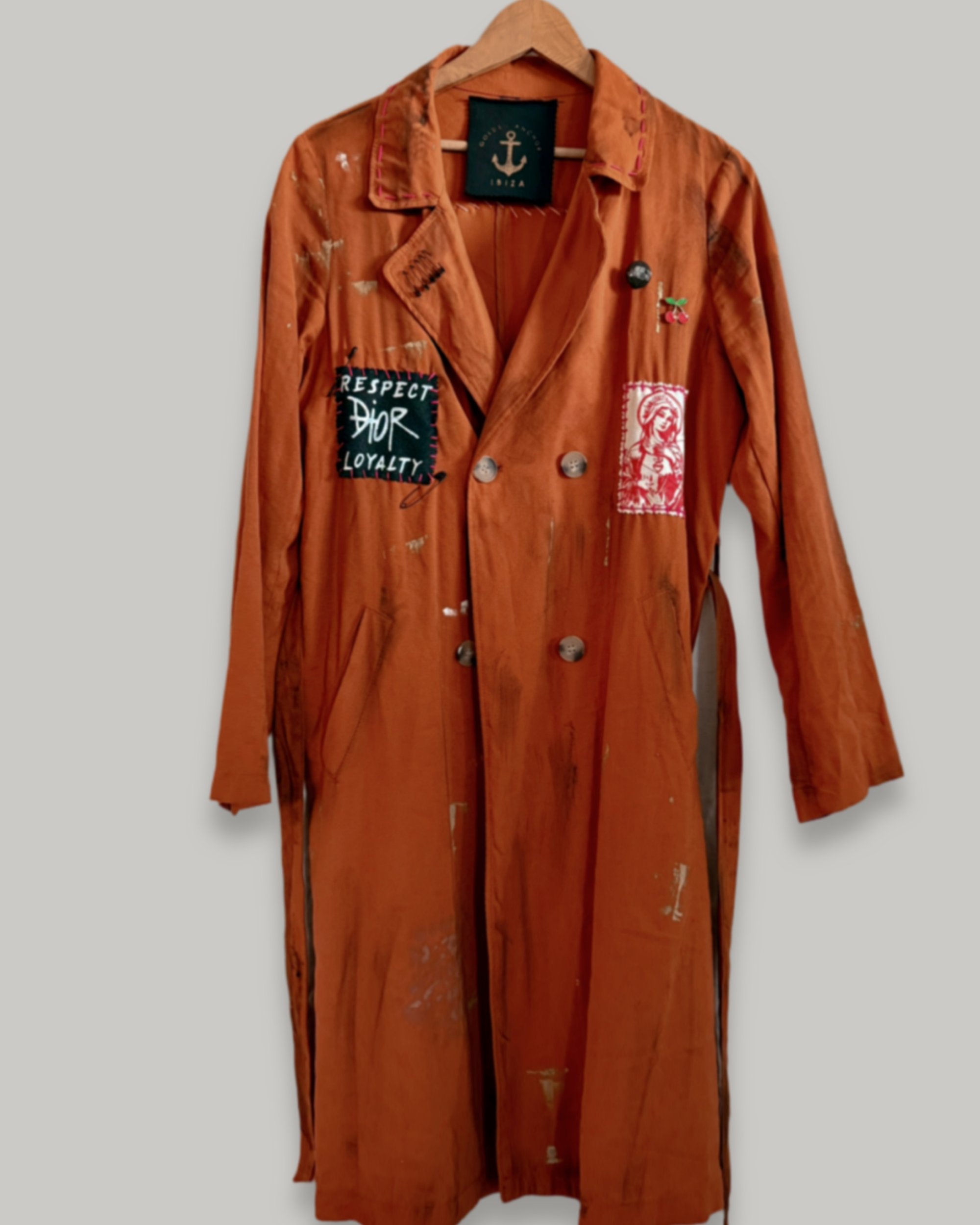 UPCYCLED ¥ UNISEX ¥ VINTAGE TRENCHCOAT ¥ IBIZA¥ HANDPAINTED