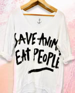 Baumwoll Shirt / Einheitsgrösse (36-42) /weiter Rundhals-Ausschnitt/ .Handgemalter Schriftzug / Siebdruck