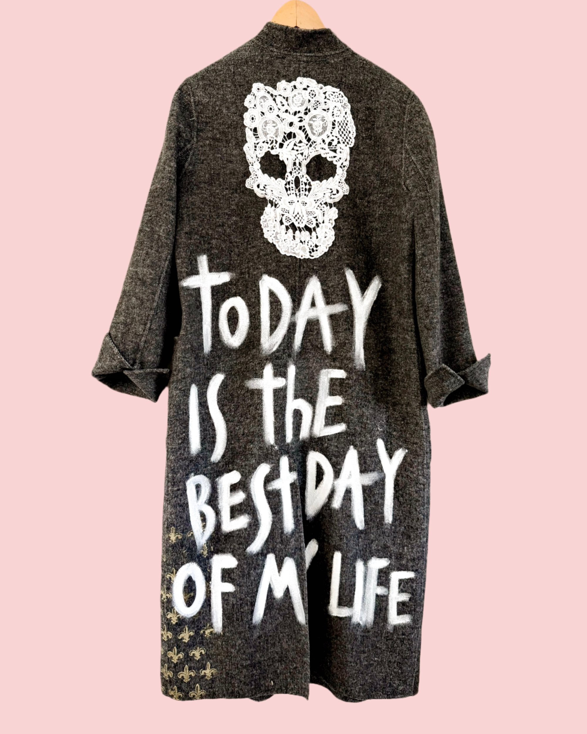 Die Basis dieses Upcycling-Mantels bildet ein sorgfältig ausgewähltes Vintage-Original aus robusten Materialien. Das Stück wurde in Ibiza individuell weiterentwickelt und manuell veredelt – unter anderem mit Siebdrucken, Stencils, Patches und Farben. Der Schnitt ist relaxed und unisex, konzipiert für Oversize-Looks oder individuelles Styling. Durch den handwerklichen Prozess entstehen leichte Unterschiede, die jeder Jacke ihren eigenen Charakter verleihen. Entworfen für Menschen, die Individualität, Qualität und bewusste Modeentscheidungen schätzen.